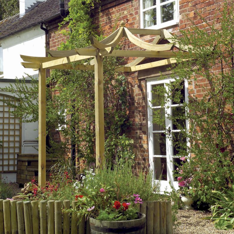 A pergola, arbor, or arbour is a garden feature forming a shaded walkway, passageway, or sitting area of vertical posts or pillars that usually support cross-beams and a sturdy open lattice, often upon which woody vines are trained. ... Read Article