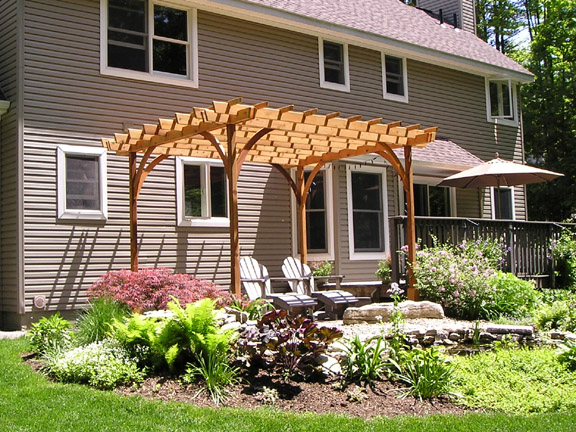 Create a pergola for climbing plants. Incorporate an entry gateway as a dramatic focus giving access to the backyard. with arbor above Cedar deck with trellis over Expanded walkway creates sheltered sitting deck Can extend covered ... Retrieve Document
